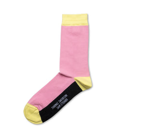 Das eine Sockenpaar ist fancy und nahezu halluzinierend.Dazu passt das ruhigere schlichte Paar in lieblichem Rosa. Natürlich fehlt auch da die schwarze Akzentfarbe nicht. Die Socken können als Paar oder über kreuz getragen werden und sollen dein Outfit so richtig aufpeppen. Ob du nun durch