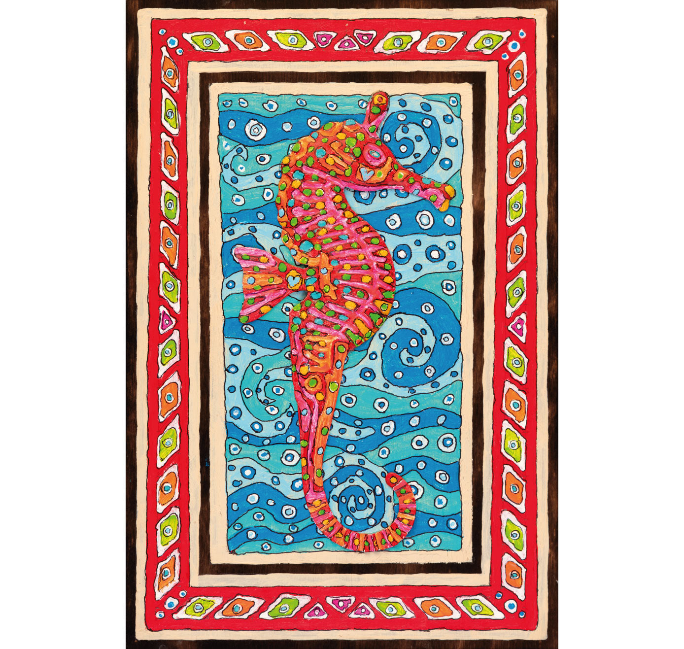 Die Orginale sind angekohlte Holzbretter, die zuerst grundiert wurden und danach mit Acrylfarbe bemalt.