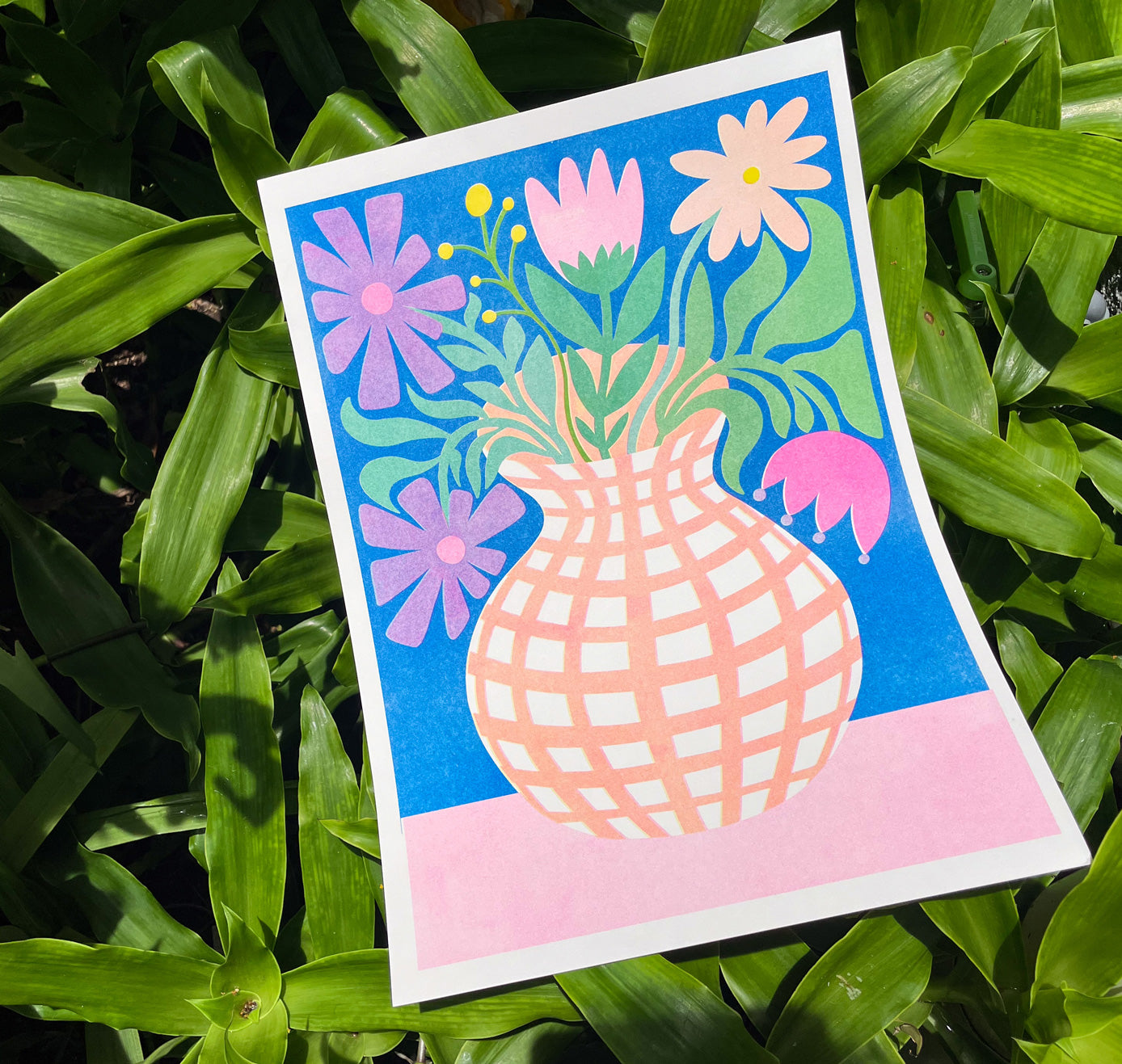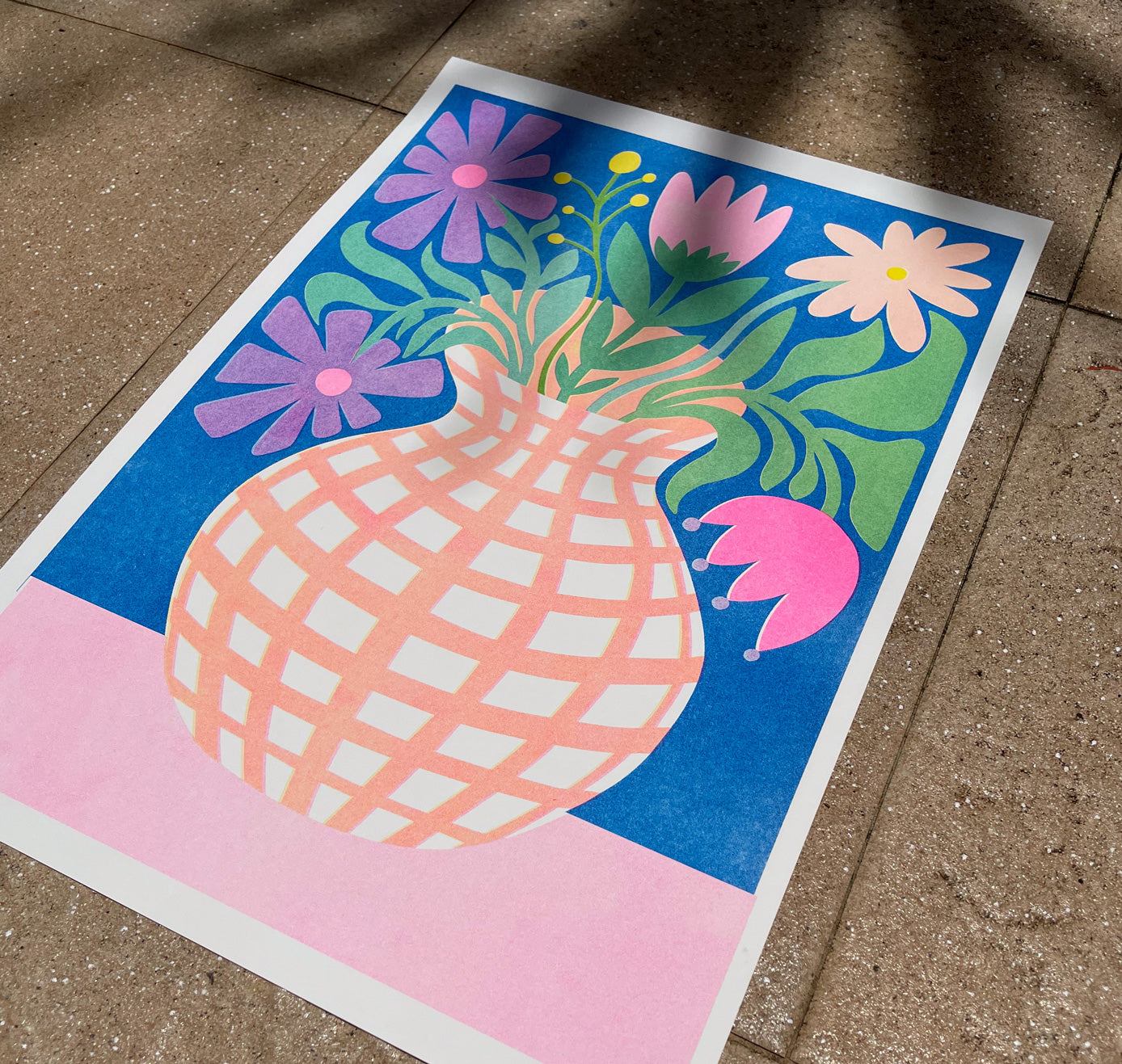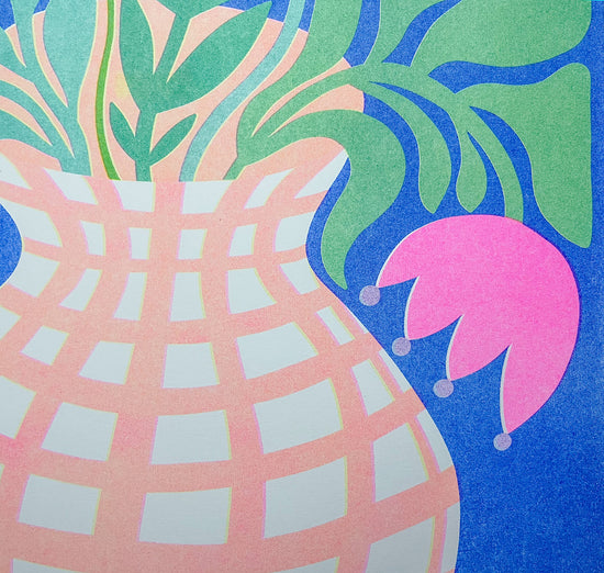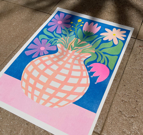 The risograph: a mix of screen printing and photocopying, a little imperfect, but all the more vibrant thanks to its neon colors. The unpredictable quirks of the Riso printer and experimenting with the translucent colors are full of surprises. That's what fascinates me so much about it. Each print is unique (so please note that the print you receive may differ slightly from the product image shown). Enjoy!