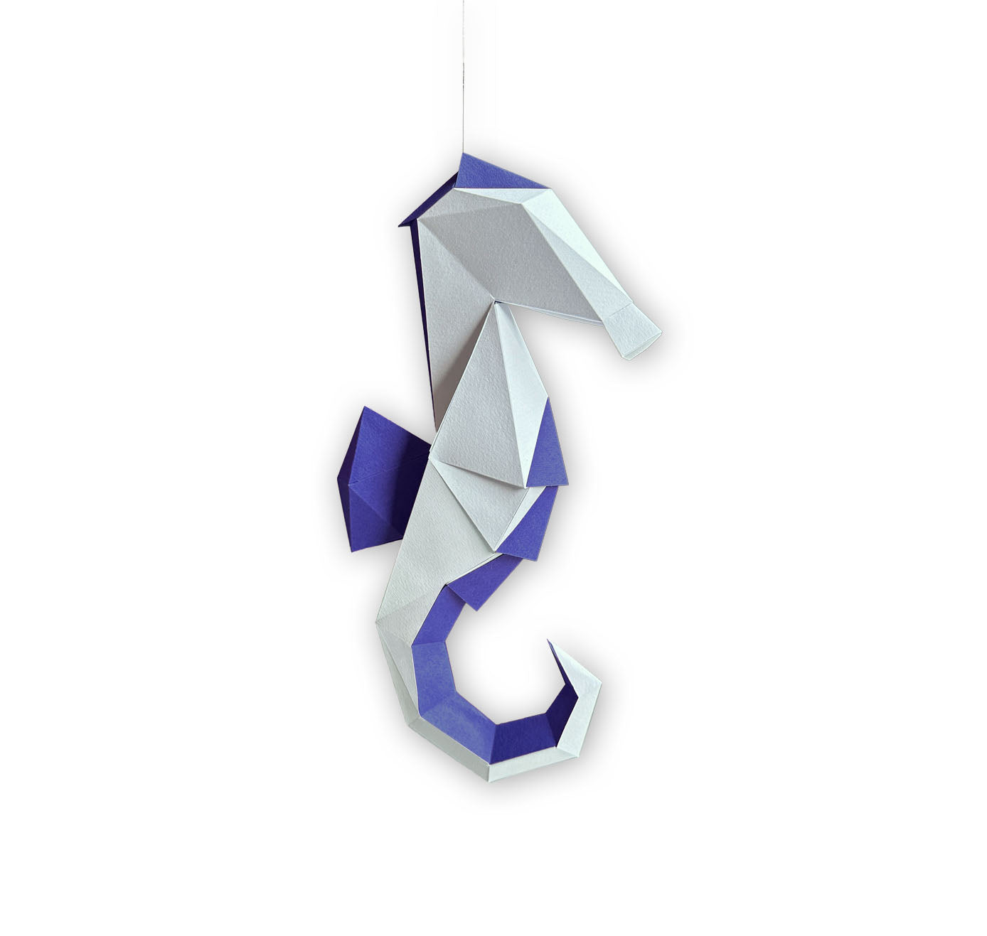Das Seepferdchen besteht aus hochwertigem Zeichen- papier und kann direkt und ohne mühselige Vorarbeit zusammengebaut werden.