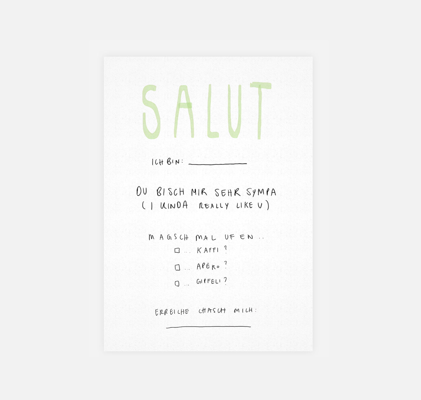 gsichtlos - Postkarte "swipe zum mitgeh"
