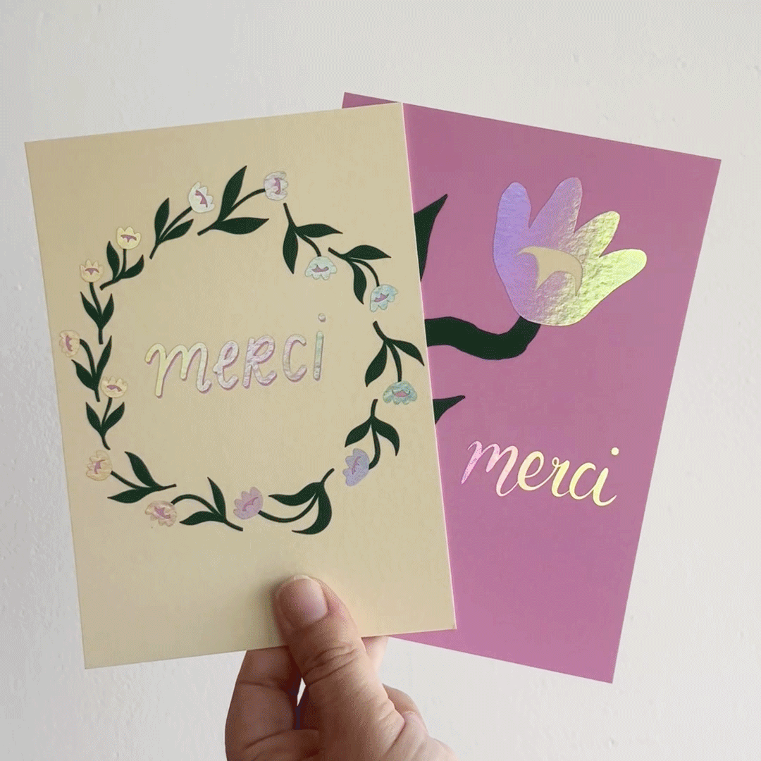 Die beiden Karten sind mit Glanzfolie veredelt.
