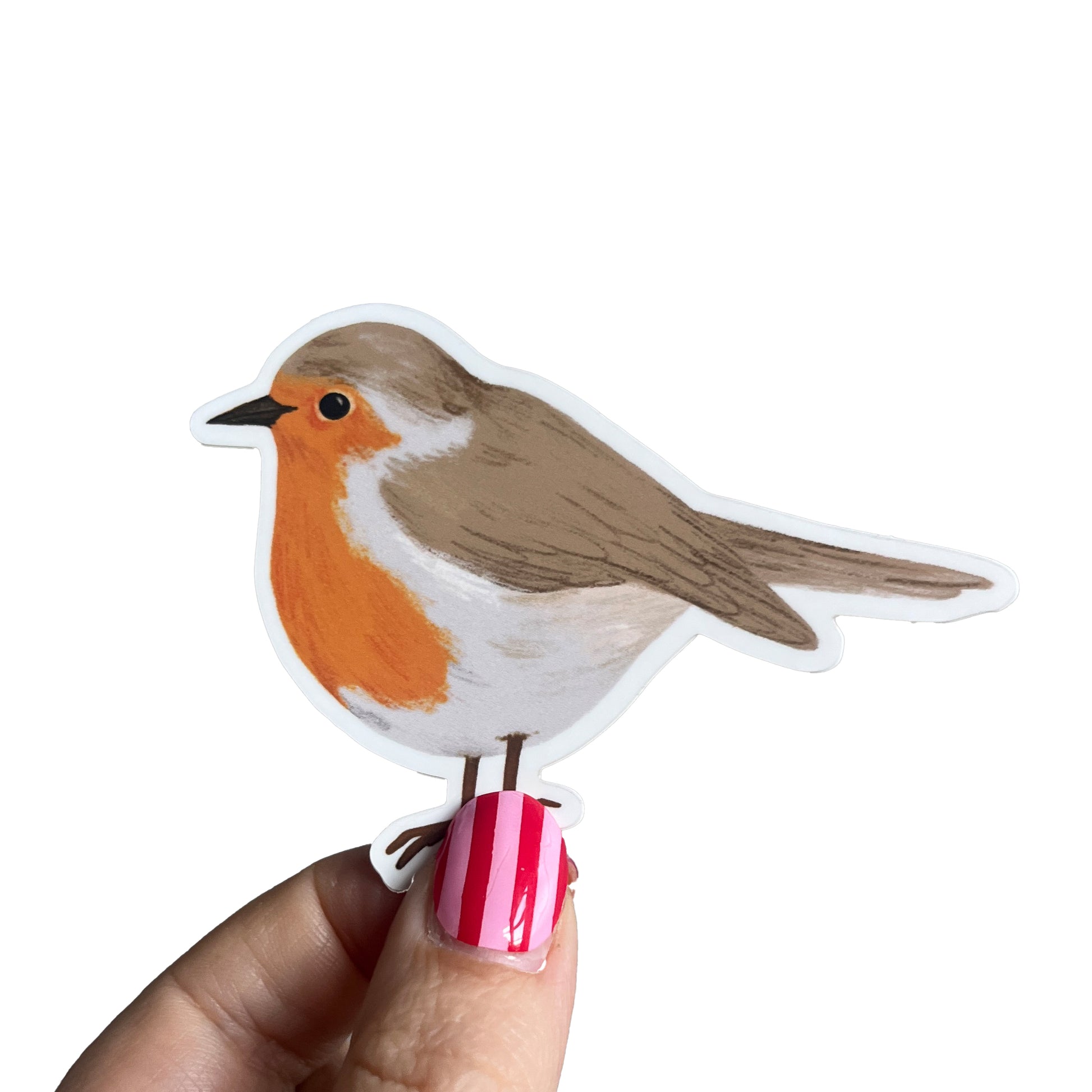 Das Rotkehlchen ist ca. 7cm gross und auf mattes Vinyl gedruckt.
