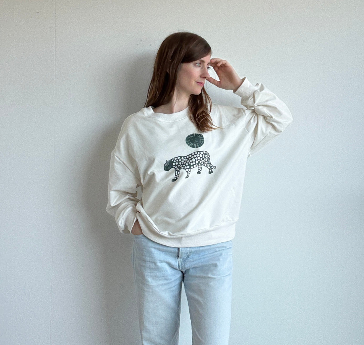 Sweater in Zusammenarbeit mit Ambre von Wildparkle! Entdecke unseren Oversize-Damen-Sweater mit trendigem Leo, der deinem Outfit einen lässigen und verspielten Touch verleiht! Perfekt für alle, die Komfort und Stil kombinieren möchten. Dieser Sweater gehört zu den vielseitigen Kleidungsstücken, die in keiner Garderobe fehlen dürfen. Lässig mit einer Jeans kombiniert, ist er ein unkomplizierter und stilvoller Begleiter für jeden Tag. Der Sweater wird in der Schweiz für dich handgefertigt! Der Stoff ist ein French Terry, auch Sommersweat genannt, der in der Niederlande bedruckt wird und sehr angenehm zu tragen ist. Es handelt sich um einen leichten Sweatstoff, der das ganze Jahr über getragen werden kann. Der Stoff ist mit dem Oeko-Tex-Zertifikat ausgezeichnet und wird mit umweltfreundlichen Drucktechnologien (reduzierter Wasserverbrauch) hergestellt. Mit einer bequemen Passform passt sich dieses Sweatshirt perfekt deinen individuellen Vorlieben an. Abgerundet wird der Look durch Rippbündchen am Saum, an den Ärmeln und am Ausschnitt. Willst du mit deinem Kind im Partnerlook strahlen? Kein Problem! Ein Kindersweater mit Leomuster ist ebenfalls in meinem Shop erhältlich, um den „Matchy-Matchy“-Look zu perfektionieren. Der Sweater wird nach der Bestellung extra für dich hergestellt! Dadurch verhindern wir unnötigen Materialverschleiss und du kannst dich auf dein persönliches Exemplar freuen.