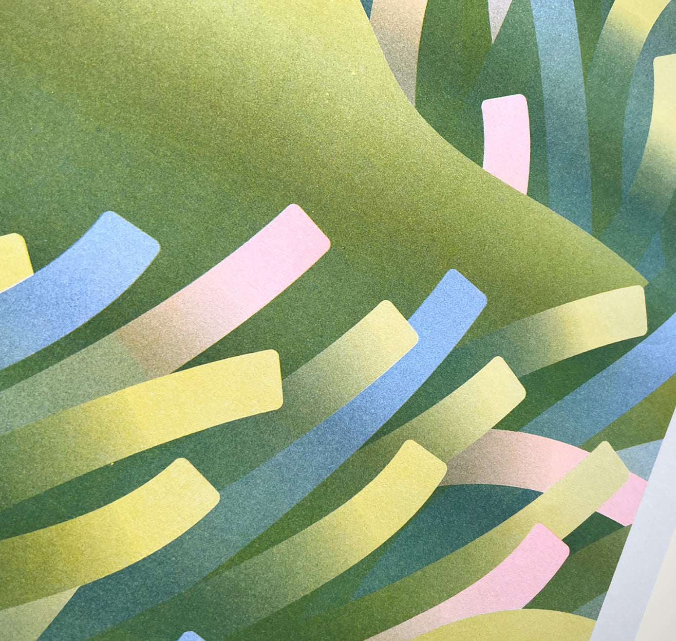 When Franco-Swiss artist Anaïs Coulon looks at nature, she captures its essential shapes and dominant colors. She refine, brings out the structuring contours, invigorates the tones and distills everything to its simplest expression to offer an abstract world, an idealized reflection of the real world.