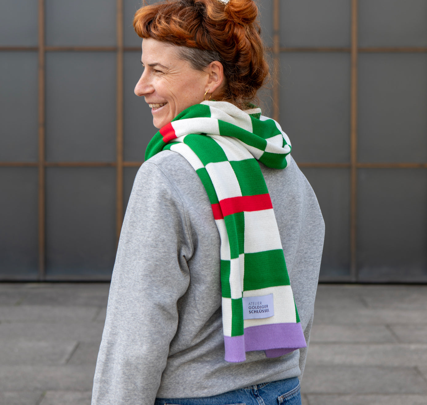 Magst du mal was Anderes, mehr Muster, bunte Farben, Wolle zwickt dich am Hals, du magst keine Tierprodukte tragen, legst Wert auf faire Produktion, am liebsten aus Europa. Say no more! Atelier Goldiger Schlüssel hat die perfekten Schals aus Bio-Baumwolle für dich!