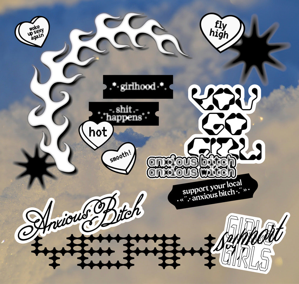 Juuhulia x anxious bitches - Stickerbogen (B/W)