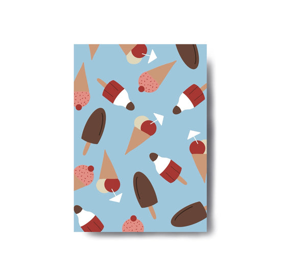Es ist immer Zeit für ein Glace. Jedes Stück von Karin Lena Schmid ist ursprünglich von Hand entworfen und gemalt. A6 Karte, Olin Rough bright FSC 300 g Papier, gedruckt in der Schweiz.