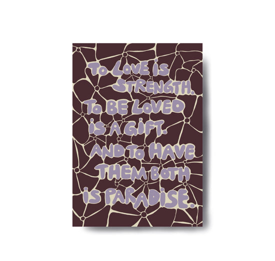 To love is strength. To be loved is a gift. And to have them both is paradise. Jedes Stück von Karin Lena Schmid ist ursprünglich von Hand entworfen und gemalt. A6 Karte, Olin Rough bright FSC 300 g Papier, gedruckt in der Schweiz. Die Farben des Drucks können monitorbedingt abweichen.