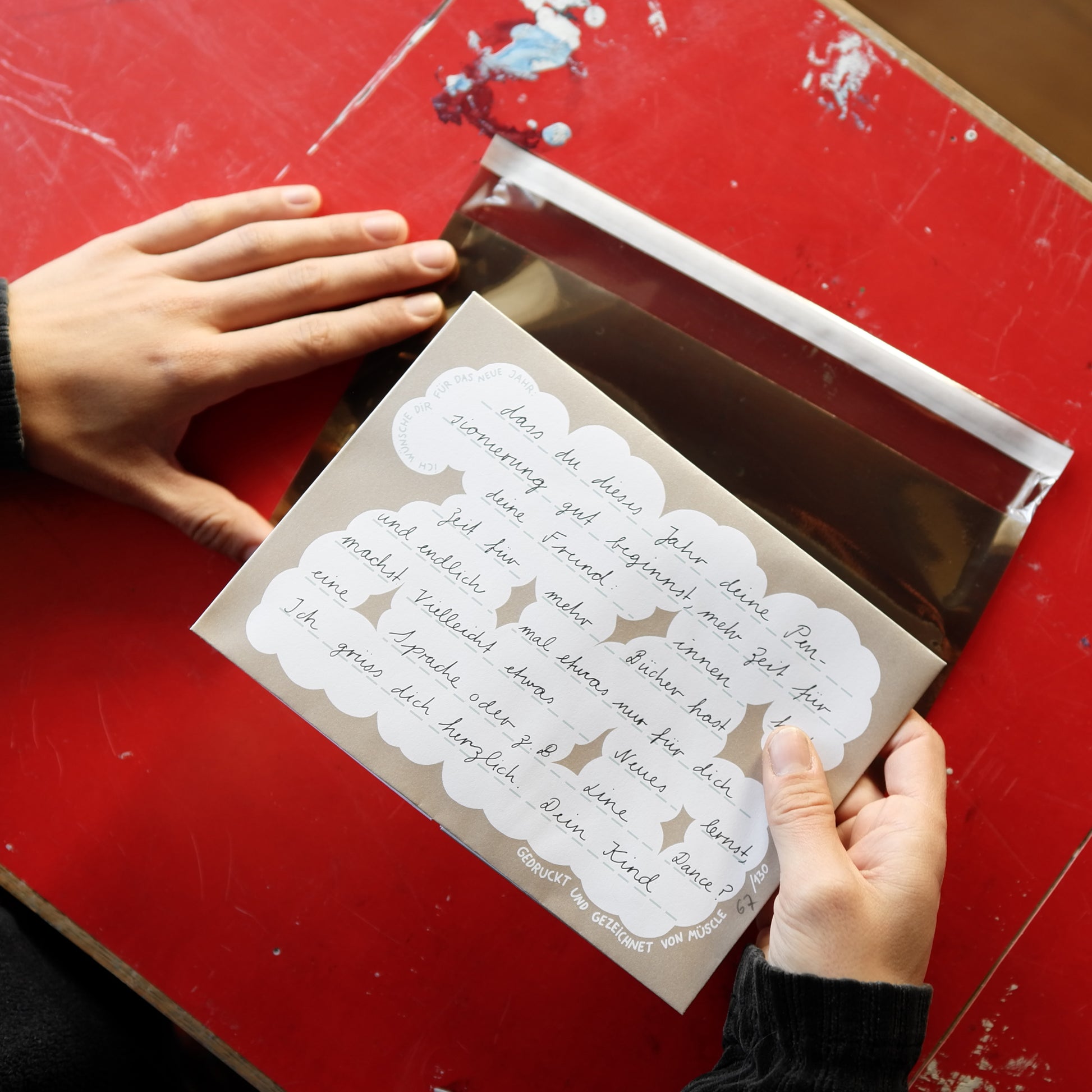 L'affiche pliable Müscle a été conçue avec amour et imprimée à la main par le collectif Müscle. Elle peut être pliée, accrochée, encadrée et offerte de différentes manières. Envoyez-la à tous vos amis et même à vos ennemis et écrivez vos vœux de Nouvel An au dos. Ou, si vous vous aimez plus que tout, gardez-la pour vous !