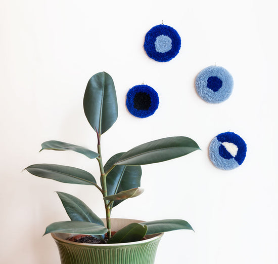 Die „Kreise“ sind wie alle unsere Teppiche mit viel Liebe handgetuftet und Unikate. Unsere Kreise kommen in vier verschiedenen Varianten und machen als Wand- Baumschmuck eine gute Figur.
