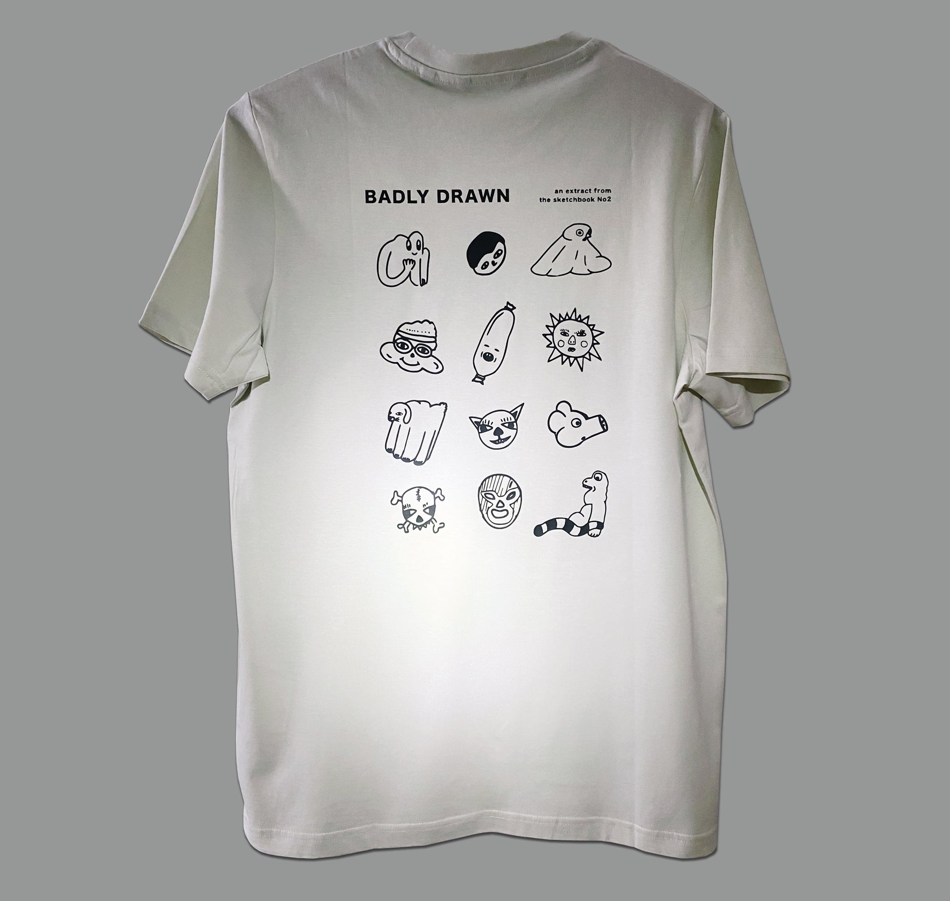 Con il motto "Badly drawn" sto lavorando a una serie di magliette unica nel suo genere, in cui schizzi mai pubblicati prima tratti dal mio album da disegno vengono raccolti e immortalati sulla maglietta con 12 motivi ciascuno.