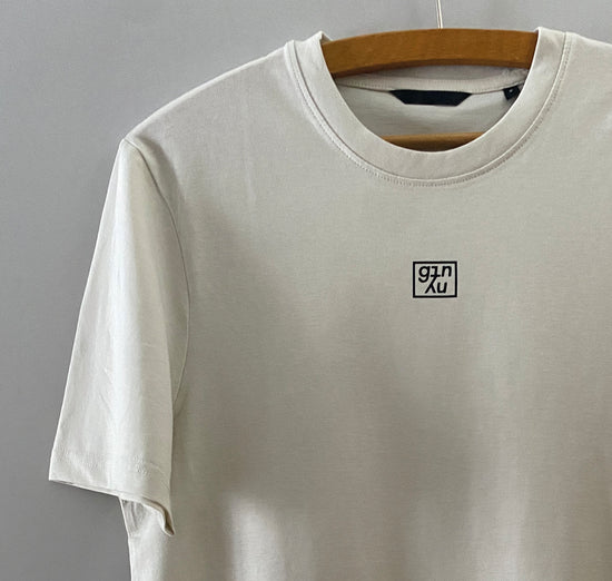 Colore: Grigio chiaro-beige-bianco (sembra quasi bianco) Stampa: Nero opaco, logo frontale, motivo posteriore Materiale: Cotone