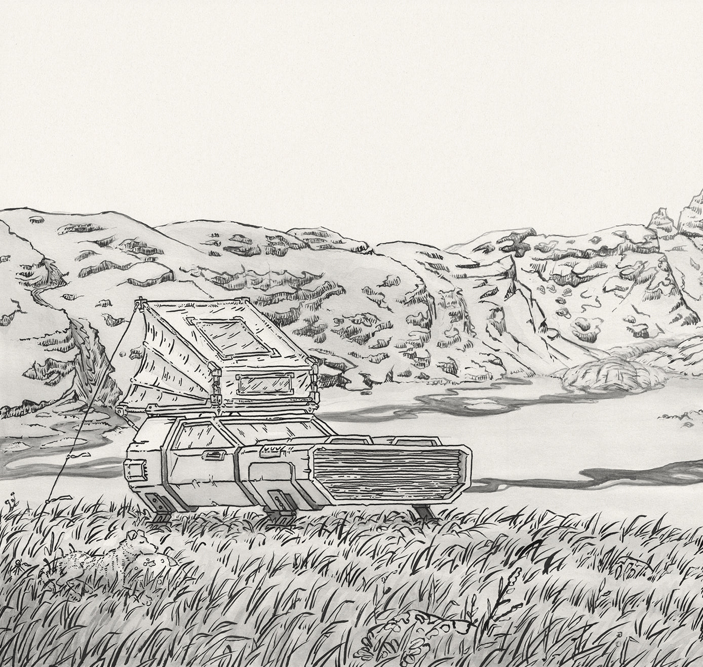Un'esplorazione della regione e dei progetti energetici alpini in generale, ma con uno sguardo al futuro, quando i ghiacciai torneranno a sollevarsi. I disegni originali sono stati realizzati con inchiostro e pennello su carta A2.