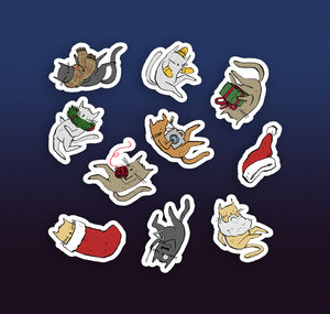 Adesivi natalizi a forma di gatto per un inverno pieno di miagolii. Ogni set contiene 8 gatti e un cappello da Babbo Natale.