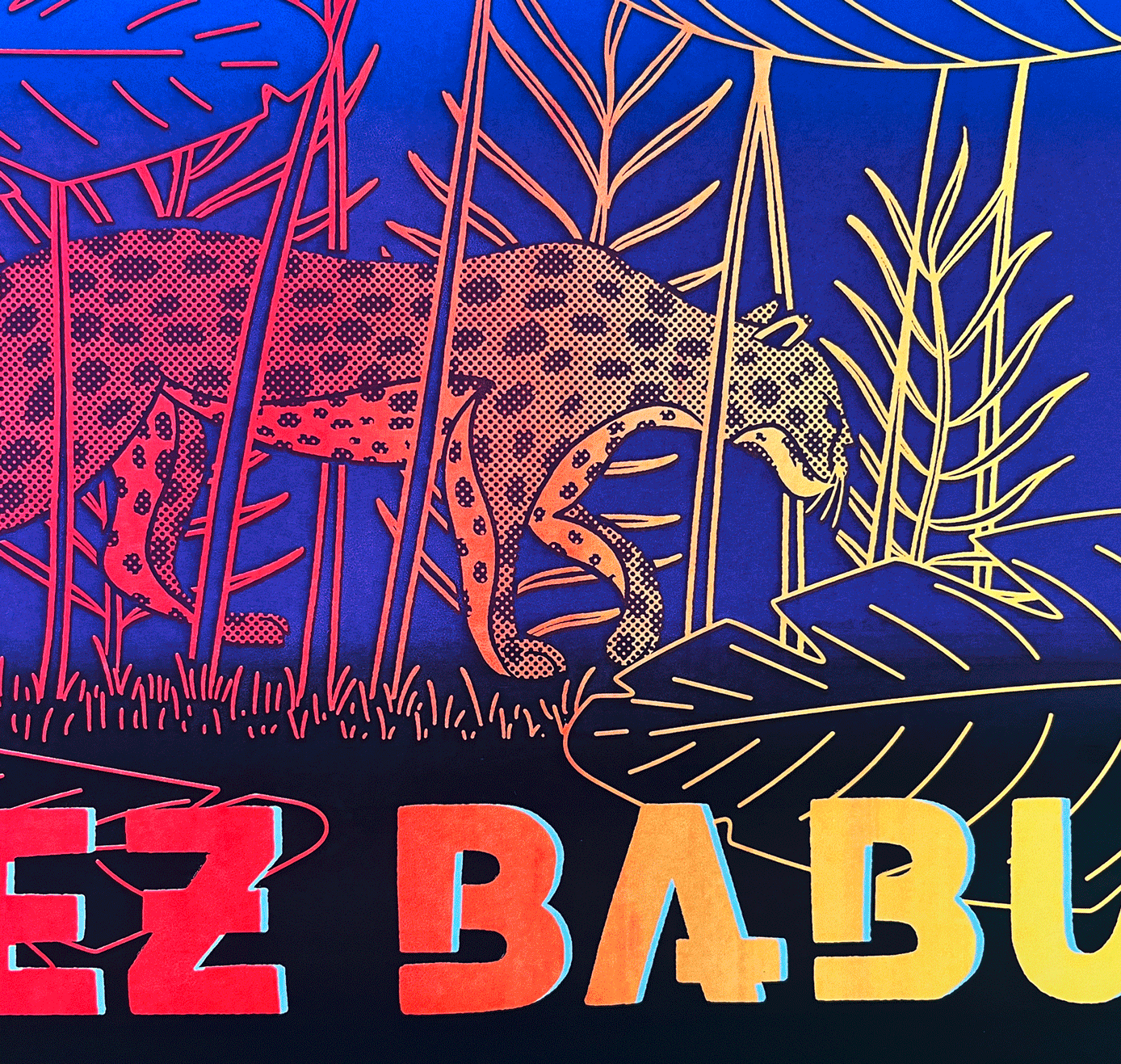 Stampa: serigrafia a mano, firmata e numerata, 3 colori, 1a edizione: 30 copie, formato: 50x70cm, carta: Z-Offset Natural 240g/m2