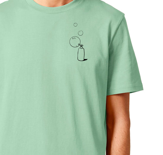 Die Illustratorin Pascale Osterwalder ist in der Ostschweiz aufgewachsen und lebt und arbeitet seit 15 Jahren in Wien. Ihre Comics über depressive Seifenspender sind in Österreich bereits kult. 2021 erschienen mit „Daily Soap – Aus dem Leben eines Seifenspenders“ (Luftschacht) und „All I ever had, went down the drain.“ (everyedition) zwei Graphic Novels über traurige Seifenspender. 2023 folgte mit „Das Käsebrot“ (Luftschacht) ihr erstes Kinderbuch. In Zusammenarbeit mit der Siebdruckwerkstatt D1, St. Gallen, kommt nun die erste T-Shirt-Kollektion über depressive Seifenspender und deprimierte Tuben heraus!