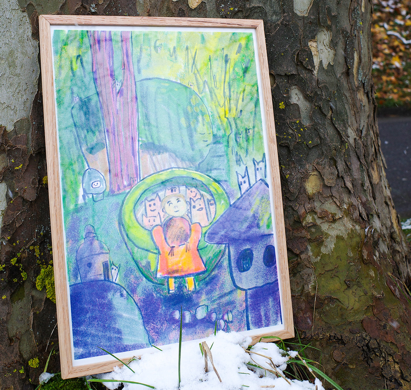 Risodruck in vier Farben: Green, Fluorescent Pink, Yellow und Federal Blue.