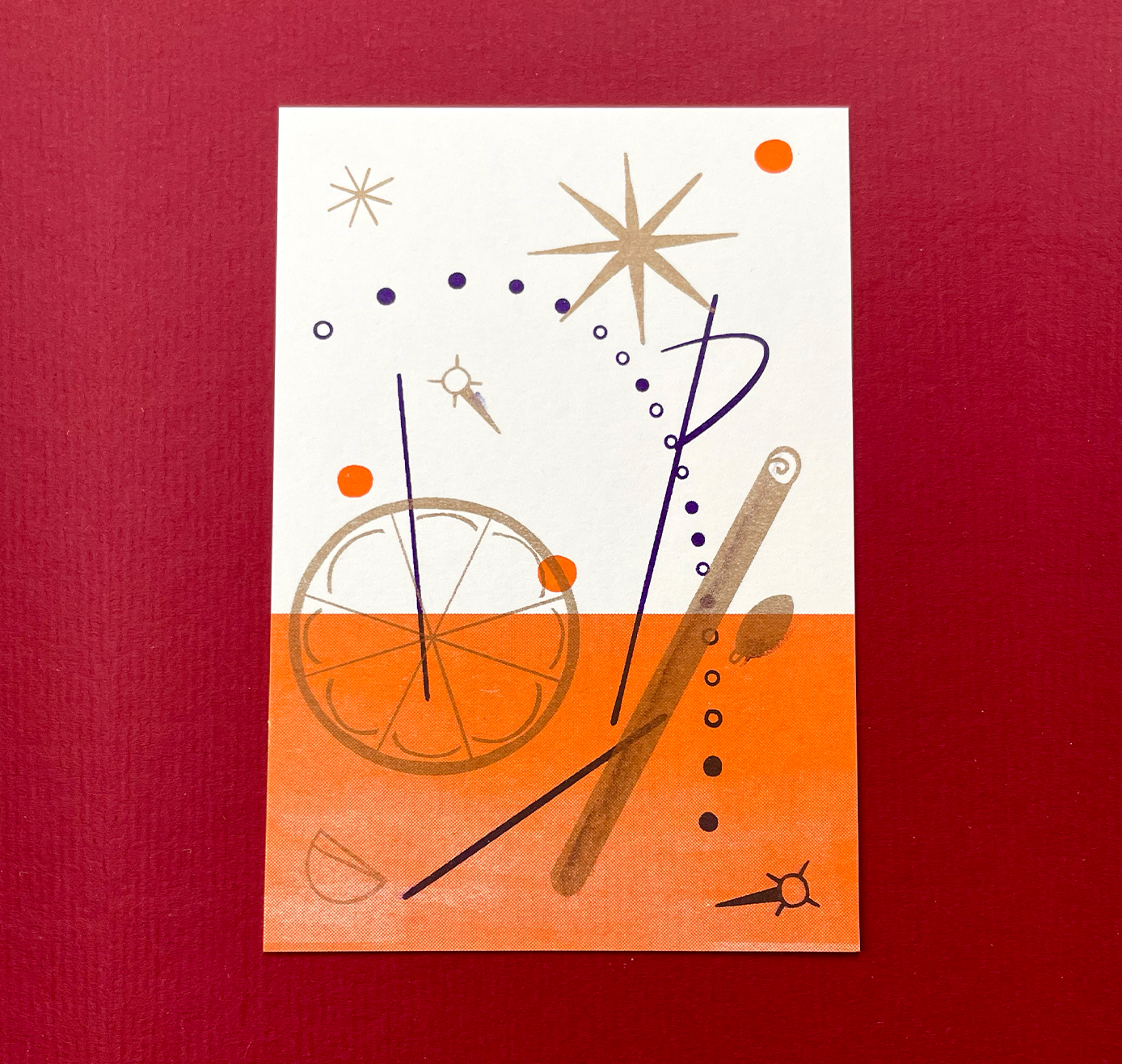 Risograph, tricolore oro/arancione/viola, < A6