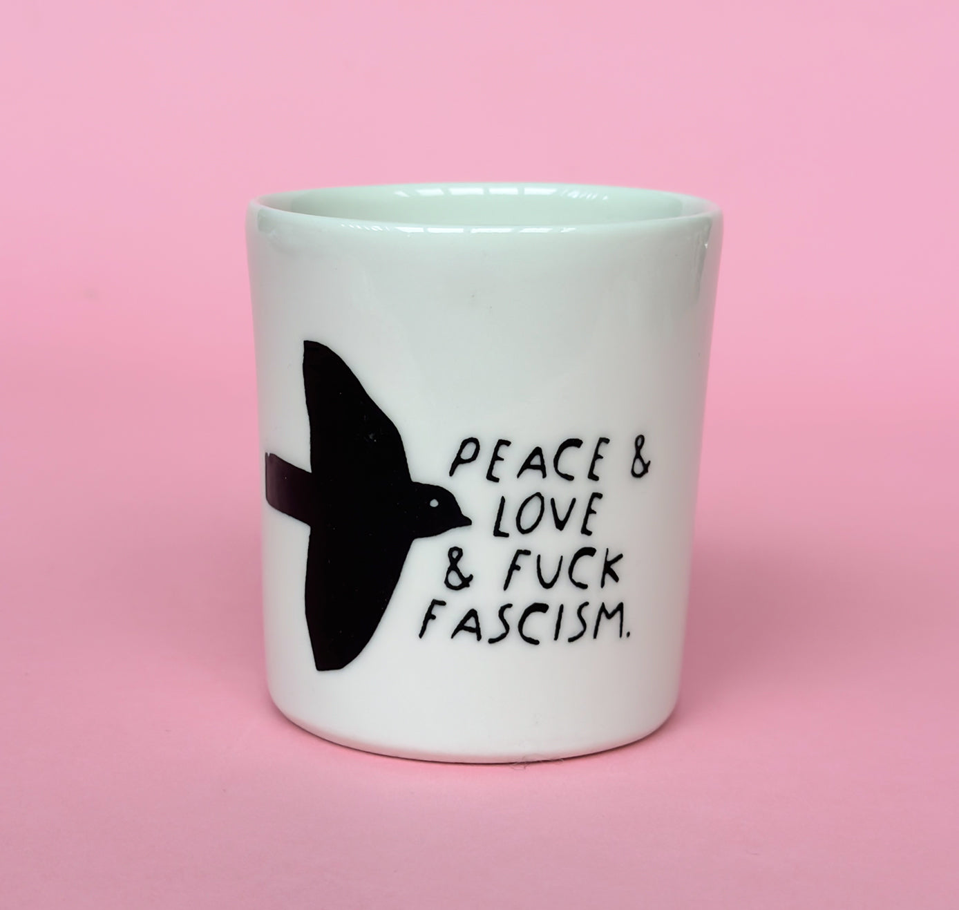 Le tazze sono disegnate da Janet Köckner dell'etichetta Sisterhoodprints Fuse a mano nel loro laboratorio di Lucerna e serigrafate con smalto sottovuoto. Le tazze possono variare leggermente nella forma e nel colore. Eventuali imperfezioni sono il riflesso della maestria artigianale e dei capricci del forno e dello smalto.