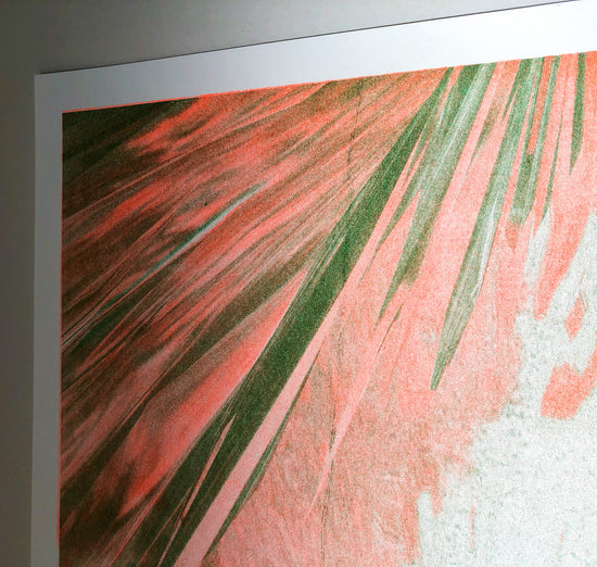 Der Risograph: Ein Mix aus Siebdruck und Kopierer, ein wenig imperfekt, dafür umso knalliger, dank seinen Neonfarben. Die unvorhersehbaren Eigenartigkeiten des Riso Druckers und das Experimentieren mit den lasierenden Farben sind voller Überraschungen. Das ist es, was mich so fasziniert daran. Jeder Print ist ein Unikat (beachte daher bitte, dass der gelieferte Print ein wenig vom gezeigten Produktbild abweichen kann). Viel Freude damit!