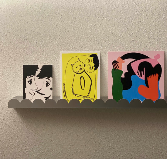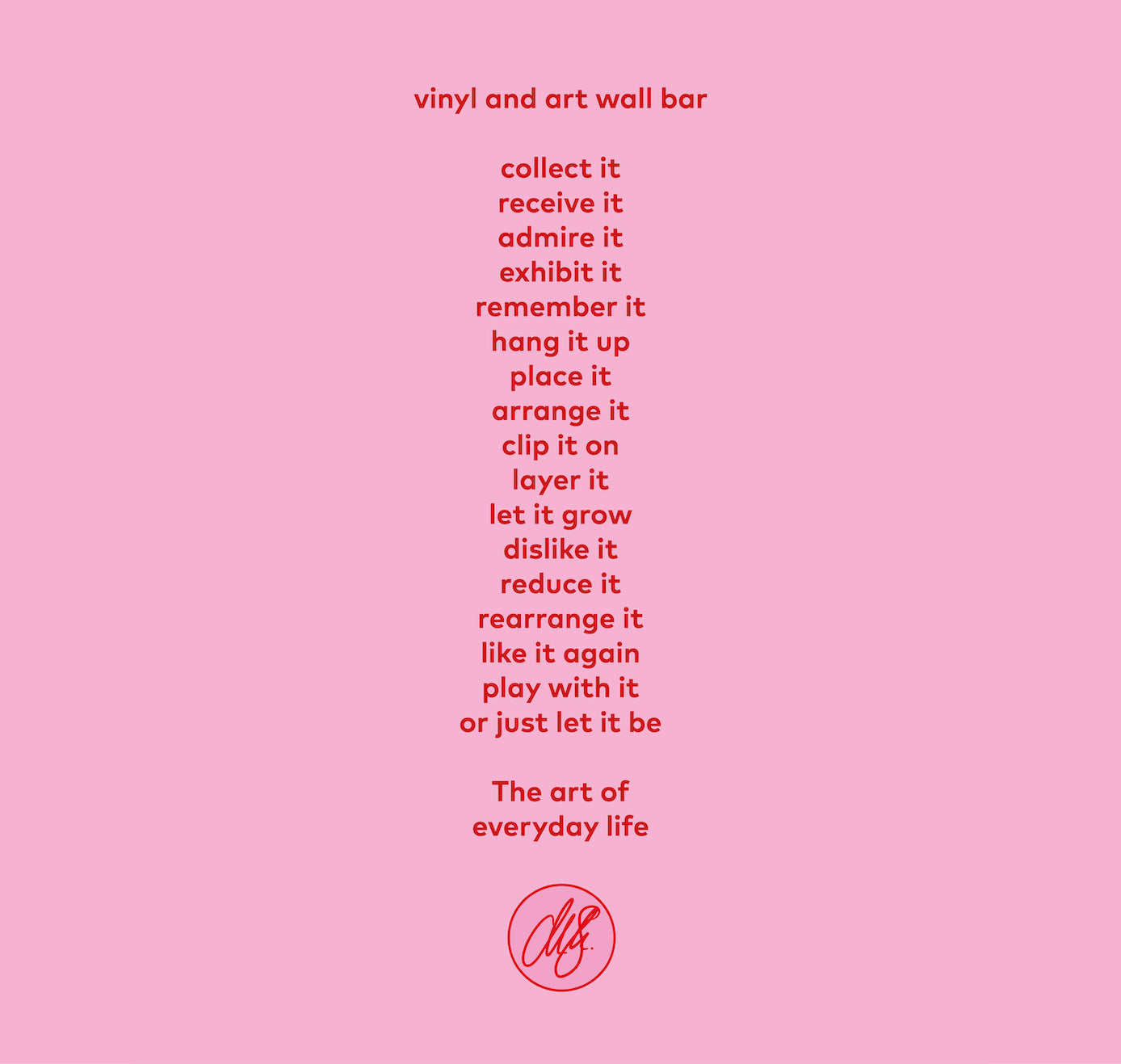 Platzieren, Anordnen, Anklicken, Aufhängen… all deiner liebsten Gegenstände und Erinnerungen die du sammelst, erhalten hast oder einfach magst. Vinyl, Postkarten, Kunstprints, Kassetten, gerahmte Bilder, Büchlein, Halsketten und vieles mehr finden Platz auf der Vinyl and art wall bar als Sammelort deiner persönlichen Lieblingsdinge des Alltags.