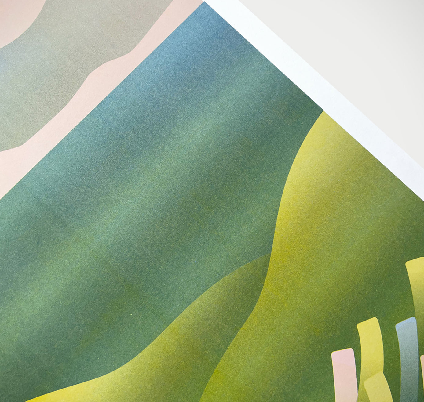 When Franco-Swiss artist Anaïs Coulon looks at nature, she captures its essential shapes and dominant colors. She refine, brings out the structuring contours, invigorates the tones and distills everything to its simplest expression to offer an abstract world, an idealized reflection of the real world.