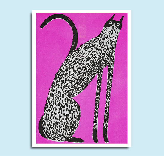 Zweifarbiger Risographiedruck auf Daunenpapier 250g/m2. In der Schweiz gedruckt. Jeder Druck ist ein Unikat, leichte Unterschiede kommen von zu Druck zu Druck vor.