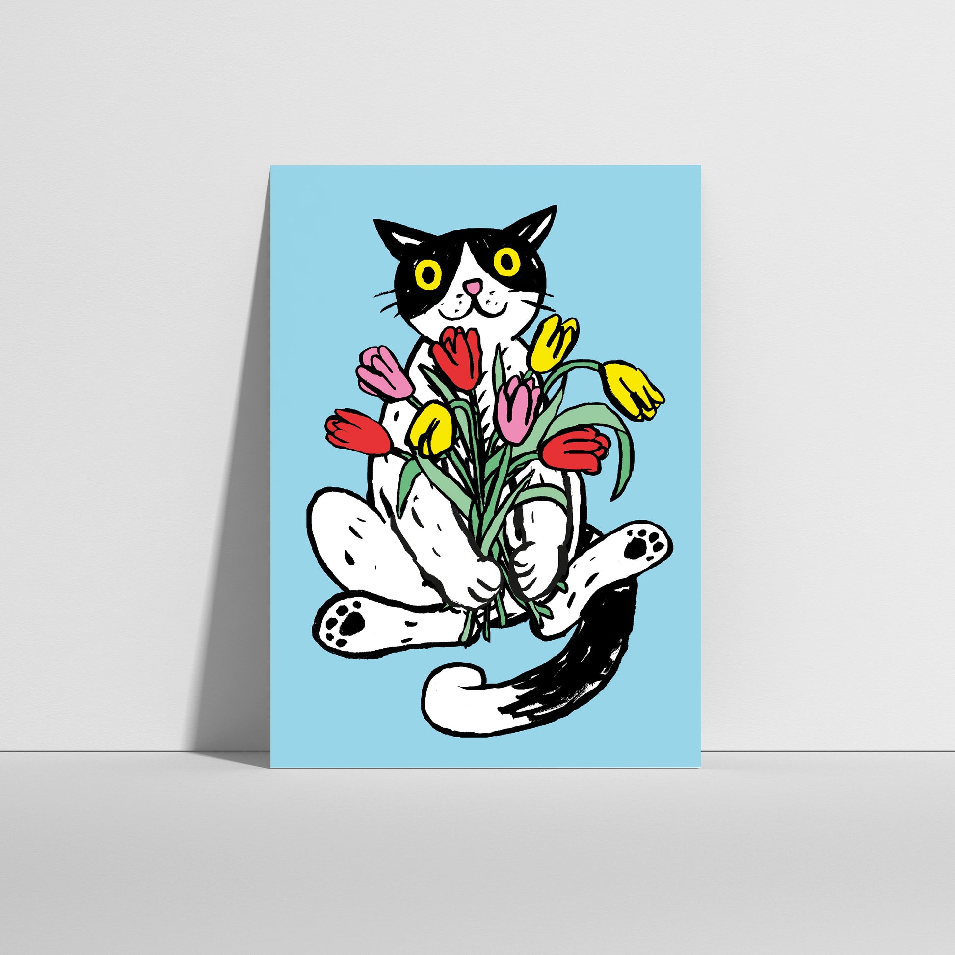 Anna-Lisa Schneeberger - Postkarte "Büsi mit Tulpen"