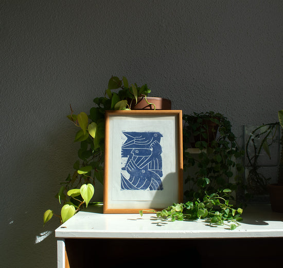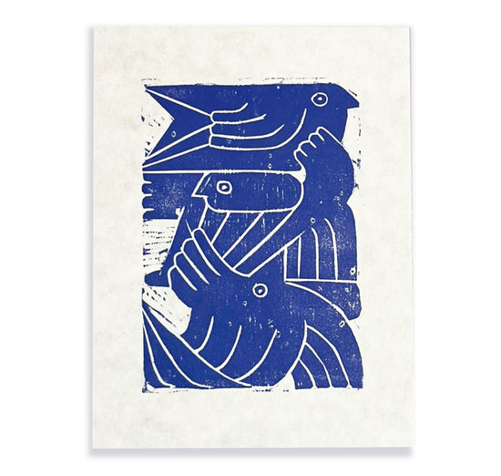 Blauer Holzdruck auf dünnes Löschpapier (ca. 70g)