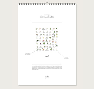 Wandkalender A4 auf hochwertigem Recyclingpapier, mit Angaben zur saisonalen Verfügbarkeit pro Monat