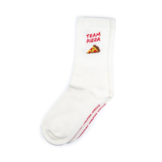 Pizza Margherita, Pizza Prosciutto und Pizza Rucola. Du liebst sie alle? Willkommen im Team Pizza! Atelier Goldiger Schlüssel liefert die passenden Socken, fair produziert in Europa aus Bio-Baumwolle dazu.