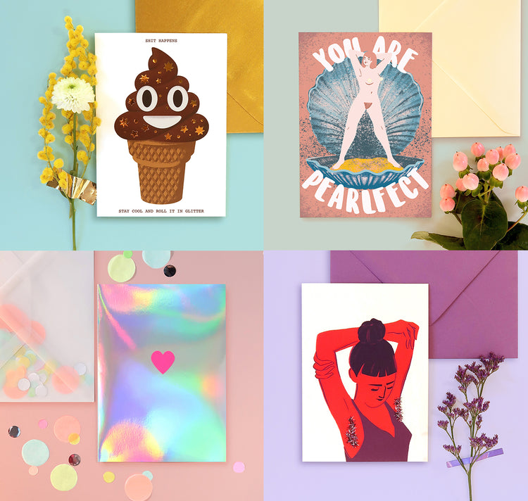 Jede Grußkarte wird von Hand mit Details wie funkelndem Glitzer, Perlen oder glänzenden goldenen Sternen verziert. Dank dieser Veredelung sind alle Grußkarten ein kleines Unikat. Jede Grußkarte wird in eine durchsichtige Zellophanhülle verpackt, damit sie sicher an ihren neuen Bestimmungsort gelangt.