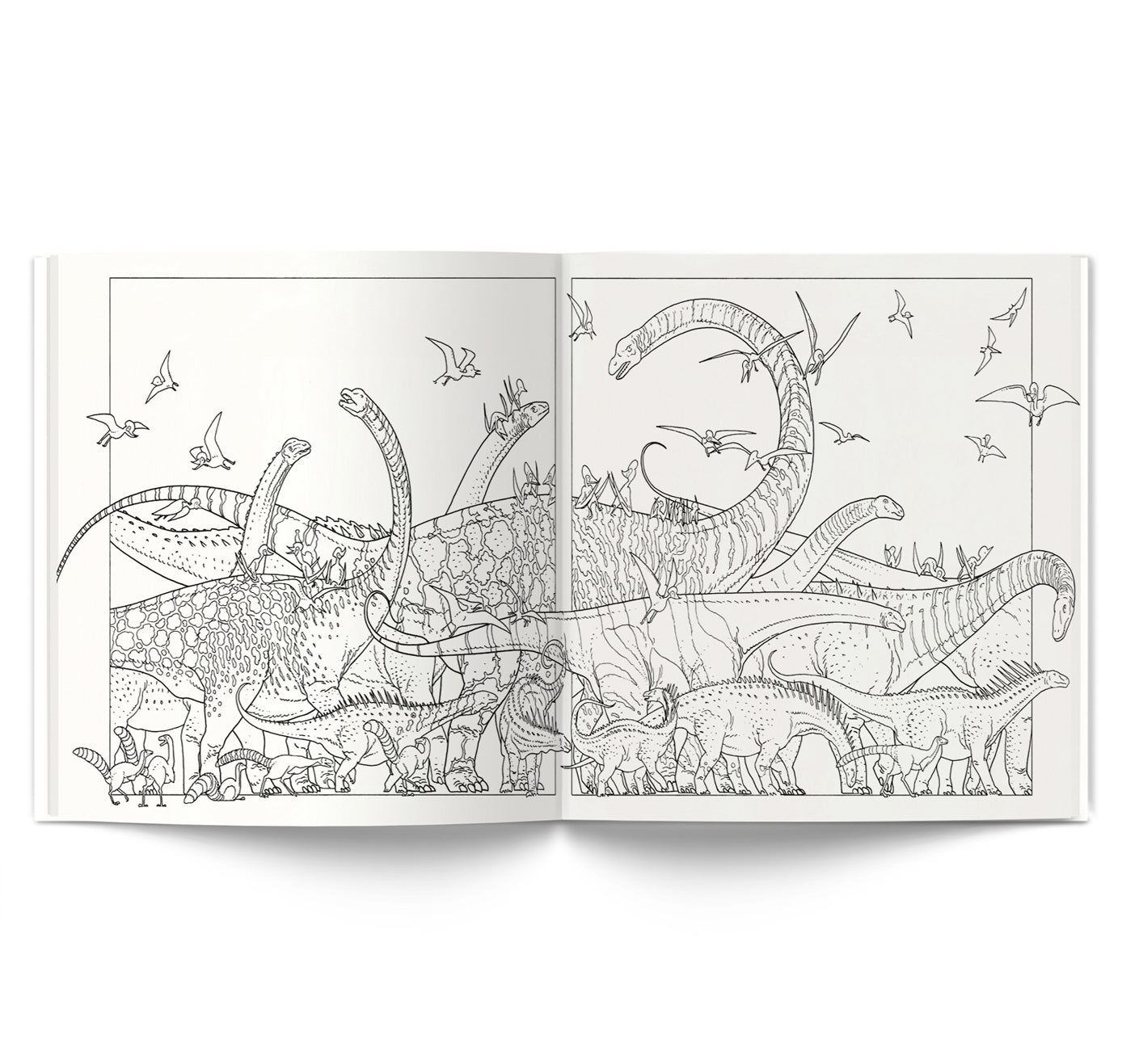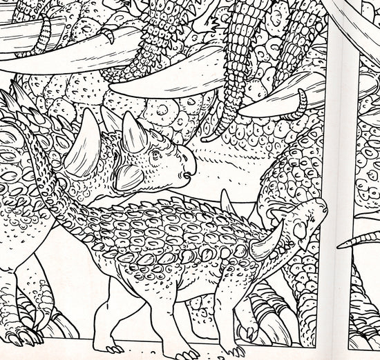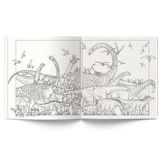 Mit brüllenden Fleischfressern, störrischen Pflanzenfressern und gelegentlichen „Renn-um-dein-Leben“-Dino-Dramen bietet dieses Malbuch jede Menge Spaß – für Kinder genauso wie für Erwachsene, die ihre Liebe zu Dinosauriern nie verloren haben.
