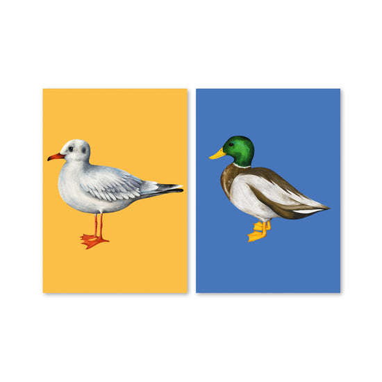 Ein Postkartenset bestehend aus einer Möwen- und einer Entenkarte.