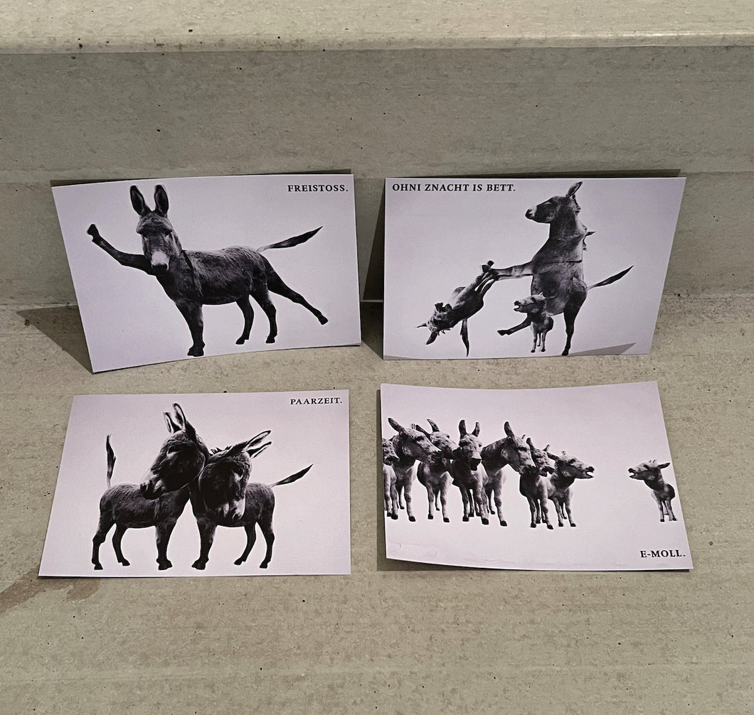 Eselserie soll ein schmunzeln in die Briefkästen zaubern. Greif zum Stift und lass die Buchstaben tschäddere. Viel Freude wünscht Bodo Rüedi x Michèle Müller. Die Esel heissen in echt: Amanda, Kahli und Luna.