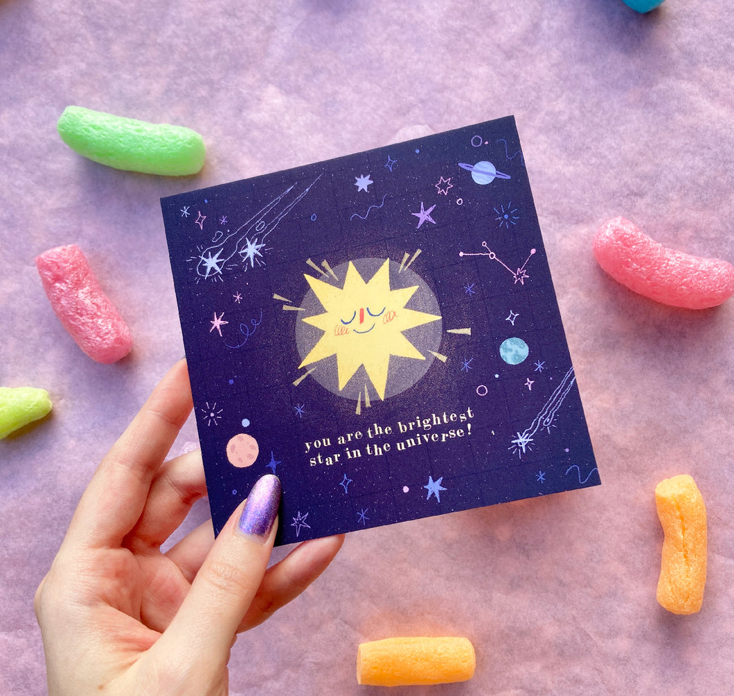 120x120 mm Postkarte mit Soft-Touch-Oberfläche, d.h. sie ist matt, fühlt sich aber samtig an! Die Rückseite ist einfarbig weiß, so dass man frei darauf schreiben kann.