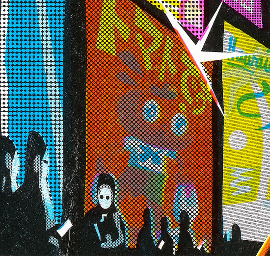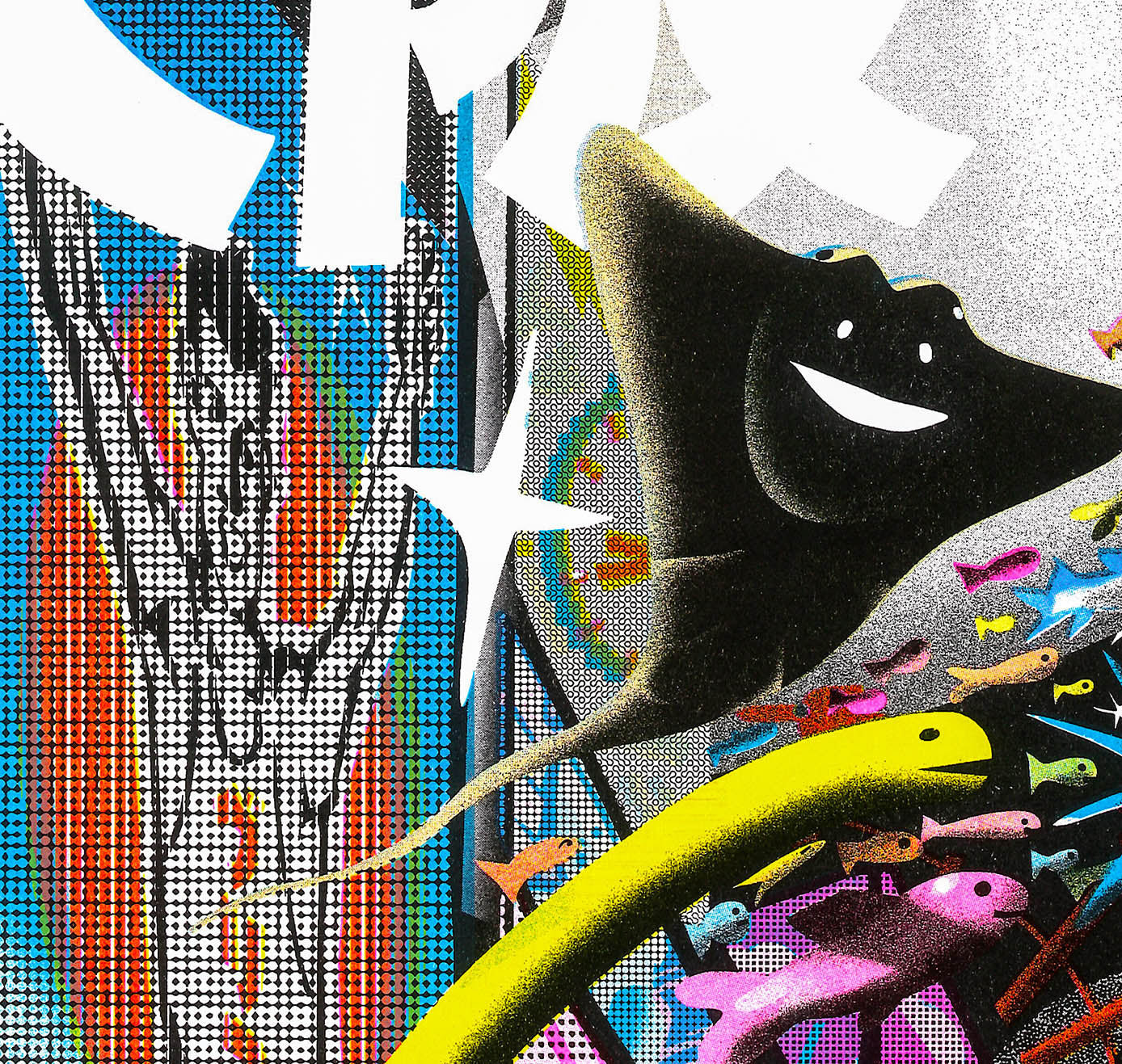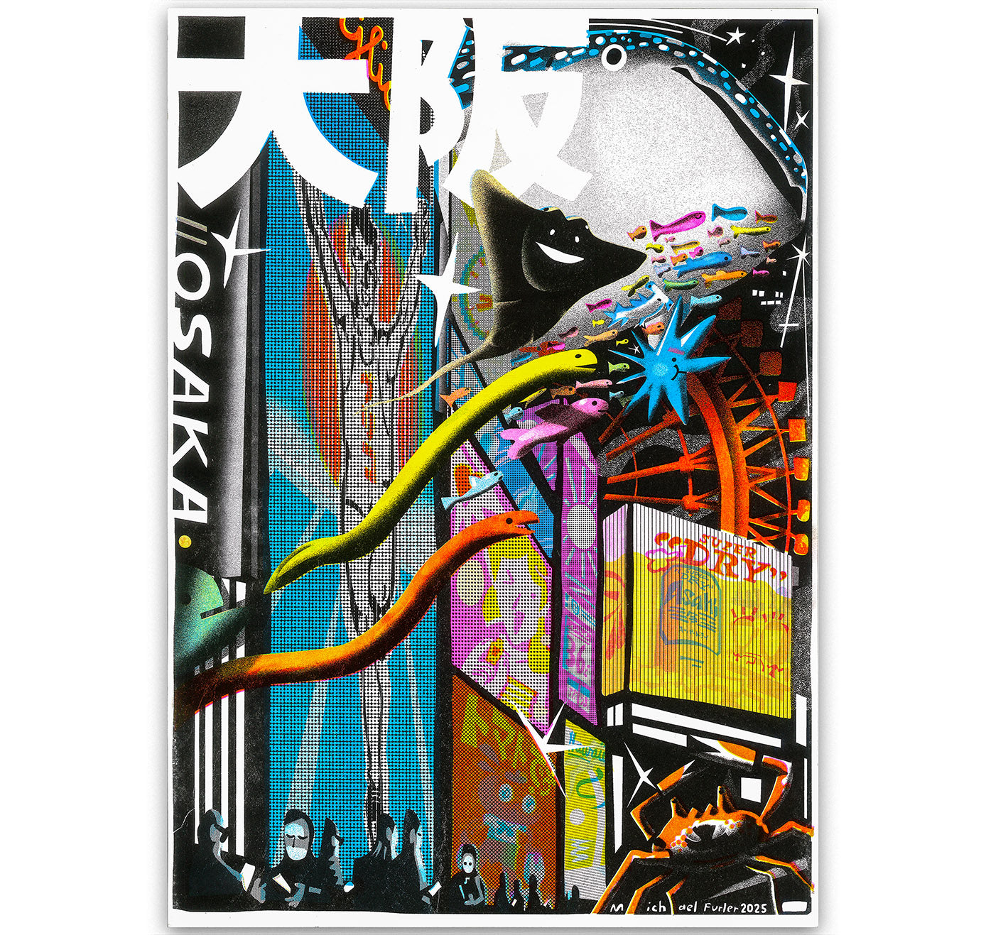 Risodruck in vier Farben: Aqua, Fluorescent Pink, Yellow und Black.