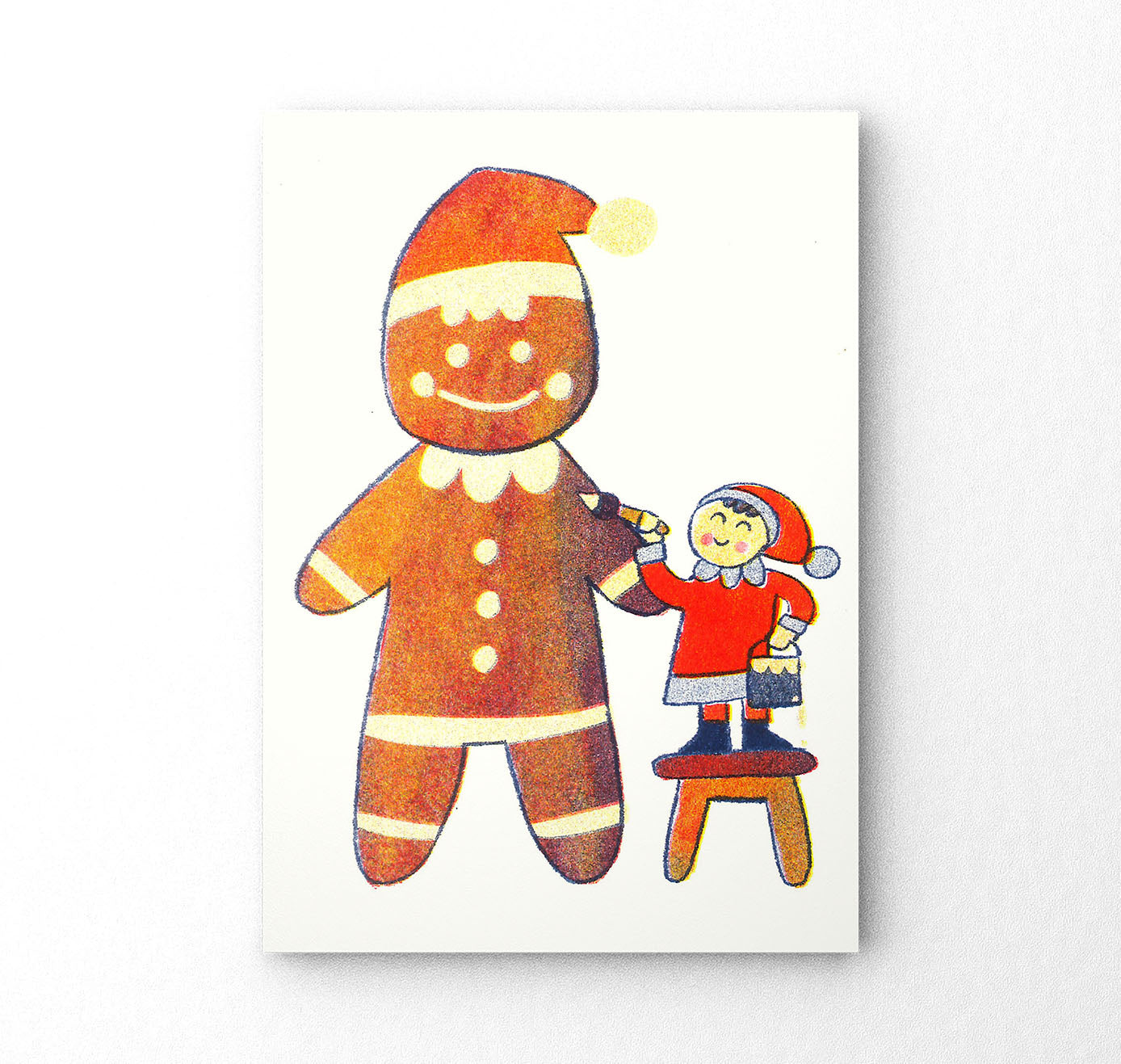 Vier Postkarten der Grösse A6, Risographie in 3 Farben, 300 g/m2.
