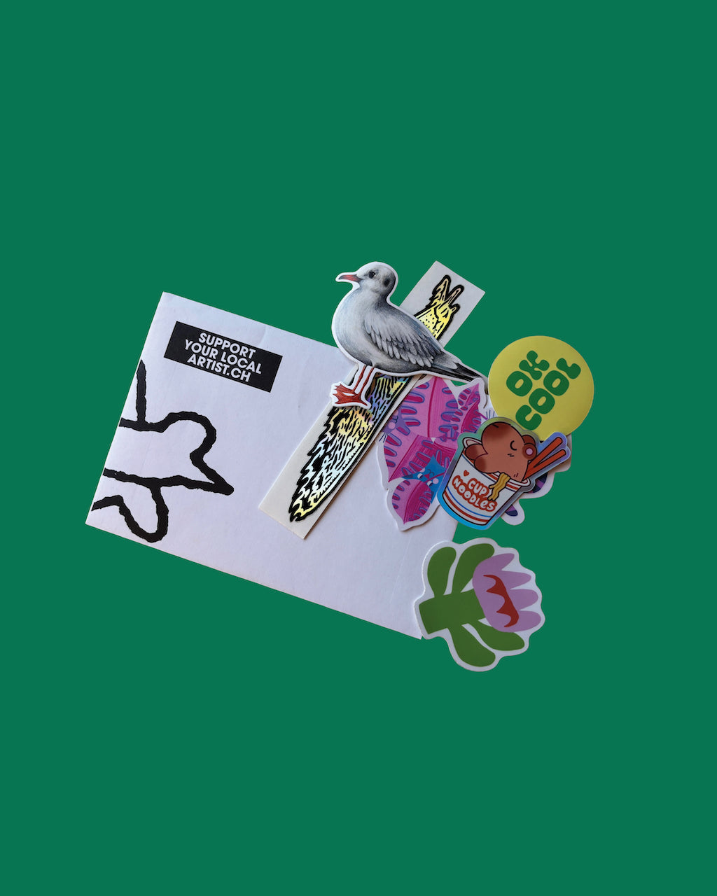 Das Sticker-Abo läuft über ein Jahr. Ab dem Monat nach deiner Bestellung senden wir dir jeweils zu Beginn des Monats drei Sticker einer ausgewählten, talentierten Künstler:in aus der Schweiz.