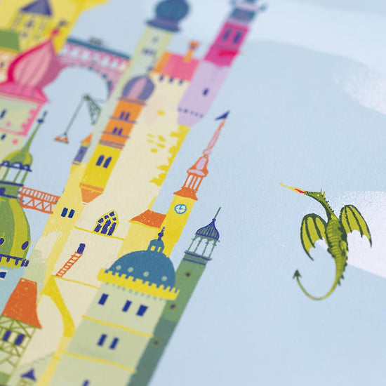 Das A2-Plakat (42 x 59.4 cm) Märchenschloss ist ein hochwertiger Offset-Druck auf mattem Naturpapier, produziert in der Schweiz.