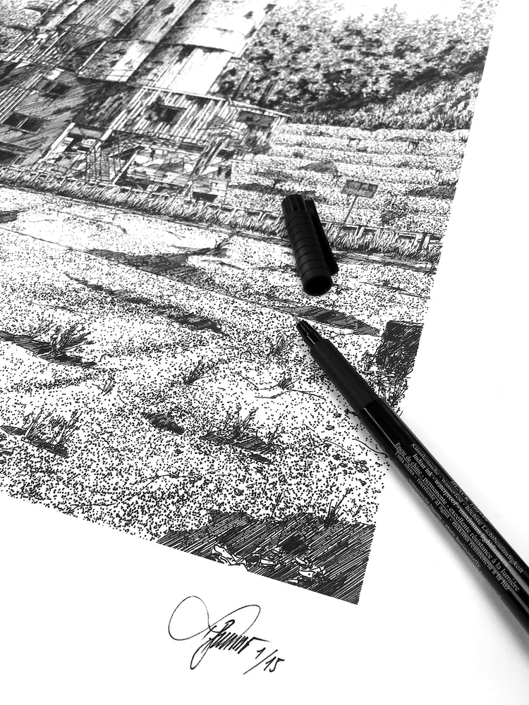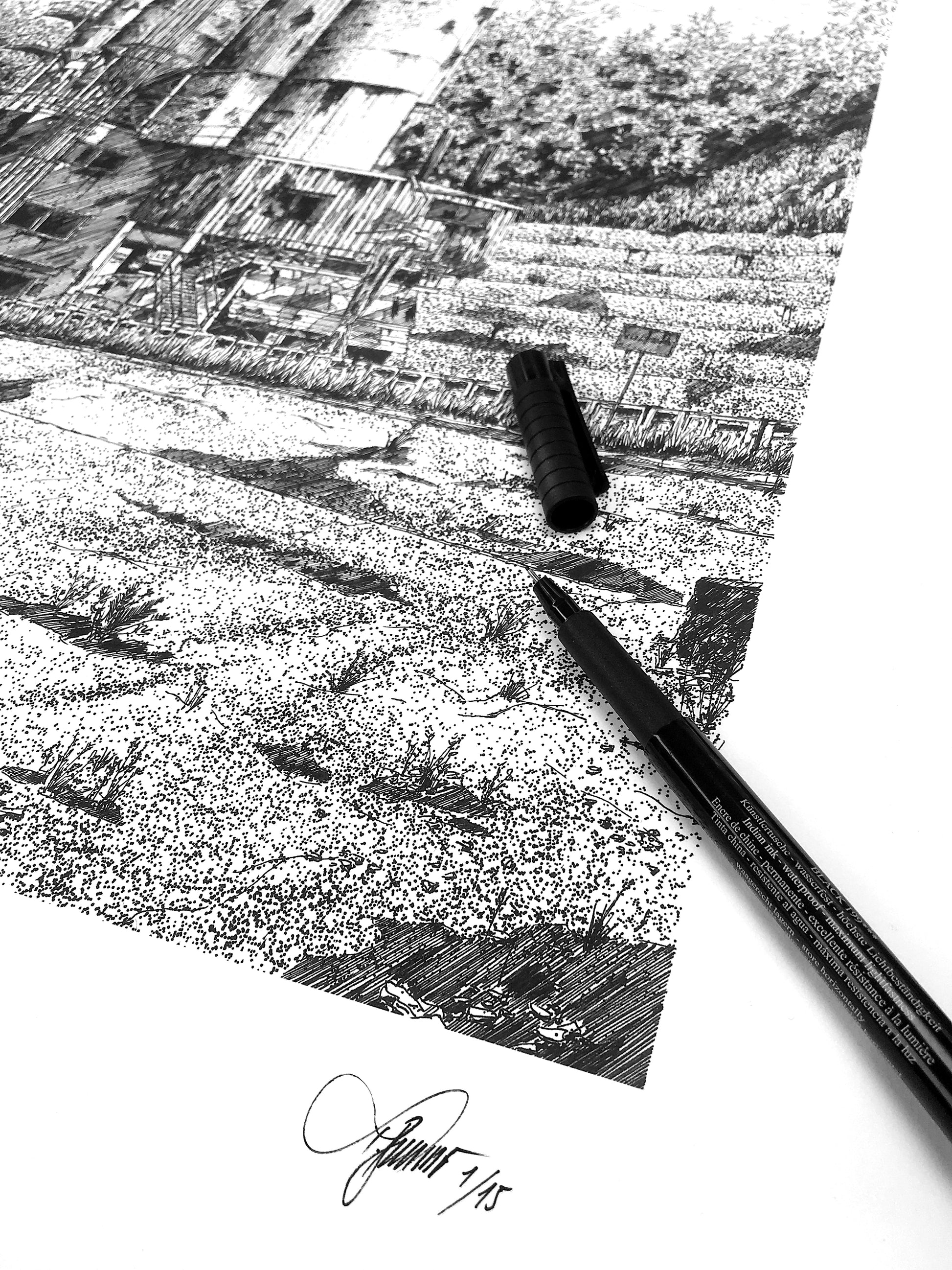 Das Original ist mit Fineliner auf Papier gezeichnet, 460x650mm