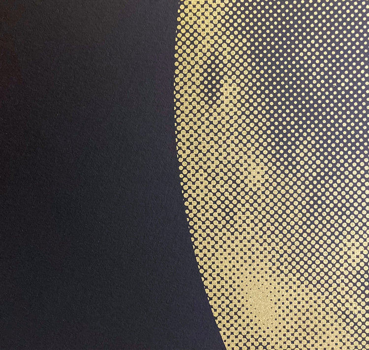 Mini-Edition von 7 Handsiebdrucken. Der Vollmond wurde als Halbtonraster umgesetzt. Bestehend aus tausenden von runden Punkten, glänzt er je nach Lichtverhältnissen. Hergestellt im Printclub Bodensee, im Siebdruckverfahren auf mattem, anthrazit farbigem Papier.