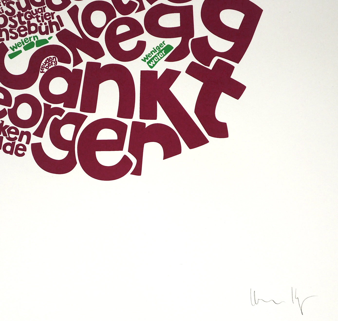 Typografische Stadtkarte von der Stadt St. Gallen. Benannt sind unter anderem folgende Quartiere: Winkeln, Sittertal, Tobel, Bruggen, Haggen, Lachen, St.Otmar, Kreuzbleiche, Rosenberg, Rotmonten, Heiligkreuz, Oberer Graben, Unterer Graben, Altstadt, Riethüsli, Nordostquartier, Südostquartier, Linsebühl, Weiern, St.Fiden, Neudorf, Notkersegg, Sankt Georgen, Beckenhalde. Auch St.Galler Landmarken wie z.B das SBB Viadukt, Kybun Park, Peter und Paul, Weiern und Mühleggbähnli sind auf der Karte zu finden.