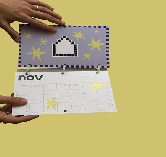 Made by two, meant for you! willio.studio × juuhulia haben LEGO-Druck und grafische Illustrationen kombiniert, um für jeden Monat ein eigenes kleines Kunstwerk zu schaffen. Dazu gibt’s je einen Spruch, der unsere Stimmung und Gedanken dieser Zeit einfängt und kombiniert und dich begleiten kann. Der Planner ist klein, leicht mitzunehmen und nachhaltig mit Kabelbindern upgecycelt.